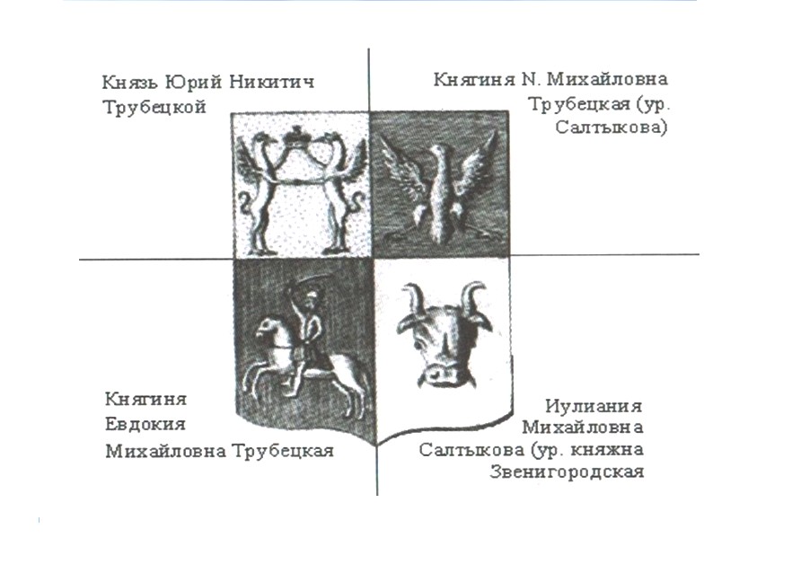 На рис 7 изображен фрагмент герба Трубецких, а на рис 8-10 гербы Трубецких, которые относили себя к Рюриковичам. На этих рисунках мы также видим изображения головы тура. См. О.И.Хоруженко «Герб в практиках формирования родовых корпораций русского дворянства XVII-XIX веков» М.Квадрига. 2013г. Стр 51 -53.